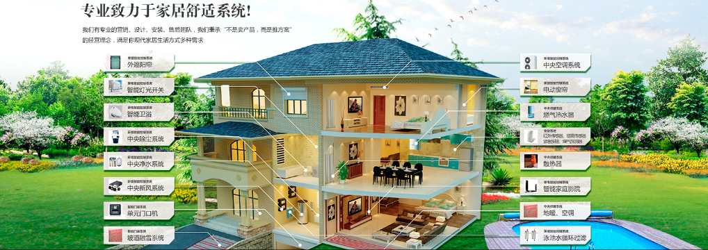 公司目前的经营范围主要为中央供暖系统、中央净水系统、中央新风系统、家用中央空调系统、智能控制安防系统及智能窗饰控制系统。合作品牌有:德国威能壁挂炉;德国胡赫地暖;德国森德散热器;芬兰瑞特格板式散热器;意大利卡莱菲集分水器;美国GE/滨特尔中央净水设备;德国森德新风系统;德国森德中央除尘系统;日本三菱重工中央空调;美国霍尼韦尔家居智能系统;瑞士格宁斯智能窗饰控制系统。各品牌均为行业内世界顶尖产品,专注高端人士的高品位生活。